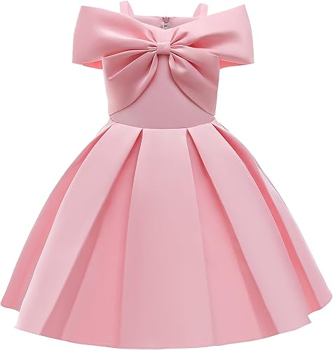 Uhnice Flower Girl Formal Dress Off Shoulder Bowknot Wedding Ball Gown