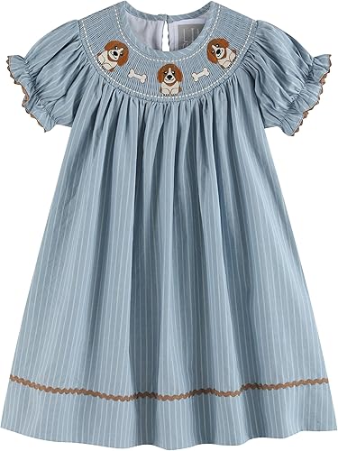 Lil cactus Light Blue Puppy Smocked Bishop Dress