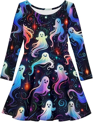 Girls Long Sleeve Dress A line Twirly Skater Casual Dress 2-14 Years Old