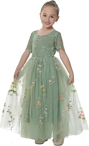 2Bunnies Girl Floral Embroidered Tulle Flower Lace A-Line Garden Flower Girl Dress
