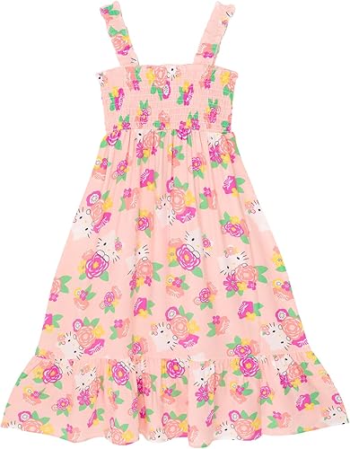 Hello Kitty Floral Girls Smocked Cami Maxi Dress Little Kid to Big Sizes (4-14-16)