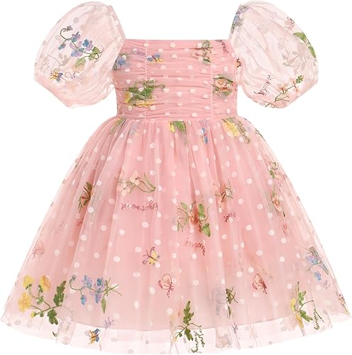 Arshiner Girls Mesh Dress Long Sleeve Tulle Sparkle Glitter Polka Dot Party Holiday Dresses Kids Clothes