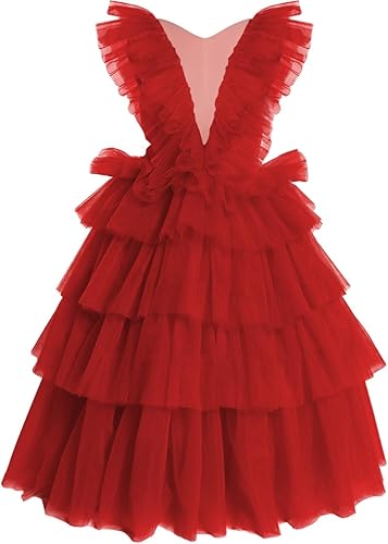 Strapless Long Prom Dresses Tiered Tulle Ball Gown Princess Dresses Ruffles Formal Evening Dresses for Women