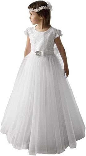 Holy First Communion Ivory Lace Tulle Wedding Party Flower Girls Dresses 1-12 Years
