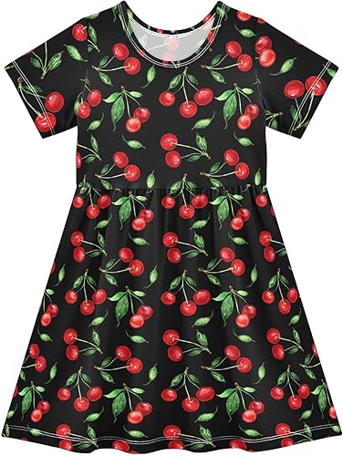 Ollabaky Little Girls Dress Short Sleeve Toddler Summer Sundress A-Line Casual Play Dress for Kids