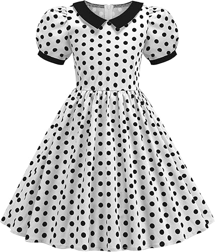40s 50s Vintage Dresses for Girls Collar 1950s Polka Dot Dress Kids Audrey Hepburn Rockabilly 50's Style Themed Party Outfits