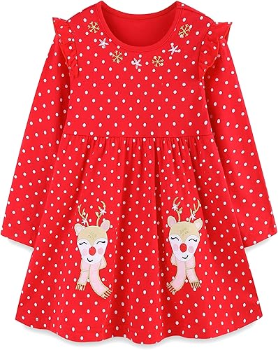 Girls Christmas Dress Printed Ruffled Sleeve Holiday Party Dresses for New Year