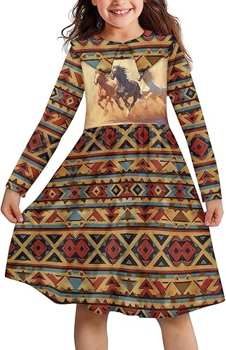 Horse Shirt Dress Trendy Long Sleeve Dresses for Kids Girl Midi A Line Twirly Skater Play Dresses 4-14T