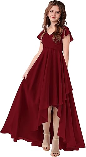 Junior Bridesmaid Dress Chiffon Flower Girls Dresses V-Neck High Low A Line Girls Wedding Formal Dress