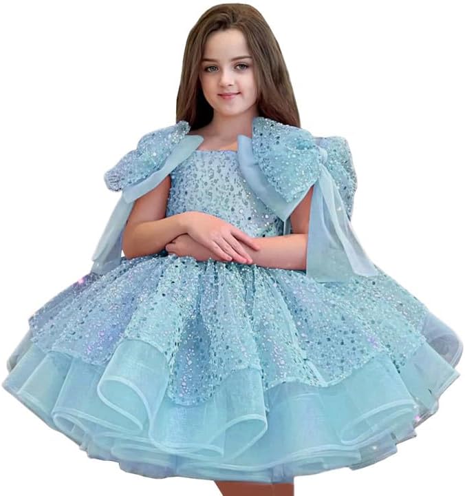 Flower Girl Dresses Sparkly Sequin A-Line Tiered Birthday Princess Glitter Bow Wedding Party Gowns