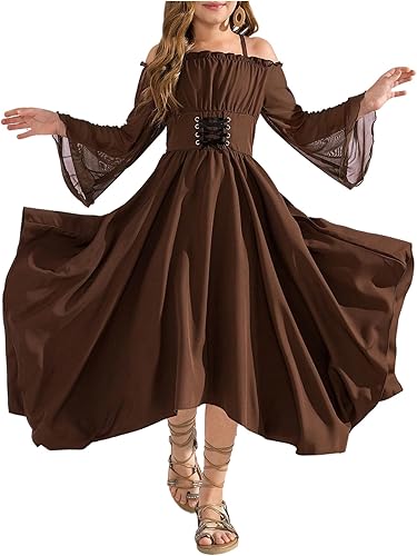 Verdusa Tween Girls Dress Ruffle Lace Up Corset Dress Flare Sleeve Asymmetrical Long Flowy Dresses