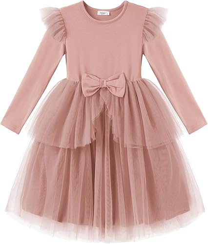 Arshiner Toddler Girls Tutu Dress Princess Tiered Tulle Long Sleeve Bowknot Birthday Party Dresses