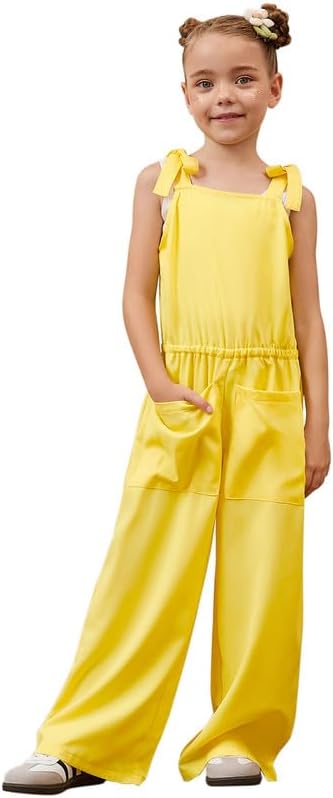 Mirawise Girls Romper Outfits Size 10 11 12 Jumpsuit Tie Strap Kid Sleeveless Yellow Wide leg Clothes Long Pant with Pocket