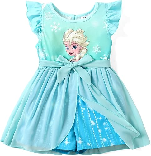 Disney Frozen Elsa Princess Ariel Minnie Mouse Toddler Girl Romper With Tulle Skirt Overlay Birthday Summer Jumpsuit 2-8Years