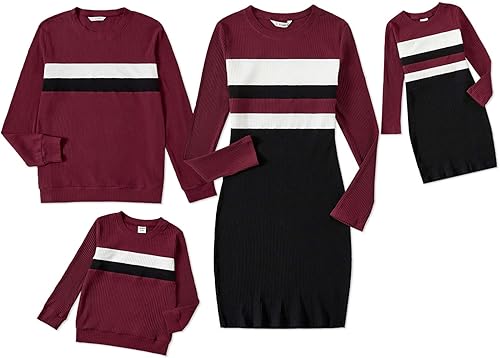 PATPAT Family Matching Outfits Fall Winter Cotton Long Sleeve Bodycon Dresses and Sweatshirts Tops Sets