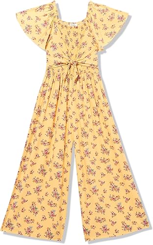 Speechless Girl's Wide Leg Smocked Bodice Jumpsuit, Mustard Floral, Medium