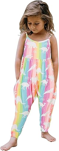 Toddler Baby Girls Dinosaur Jumpsuit One Piece Sleeveless Casual Romper Spaghetti Strap Girls Summer Teen Clothes