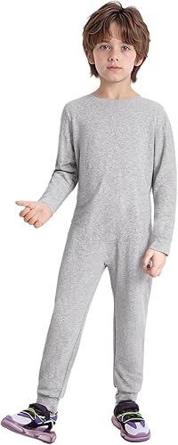 Oyolan Adaptive Clothing for Kids Boys Girls Long Sleeve Long Leg Jumpsuit Zip Back Overall Romper with Special Needs Grey 8 Years