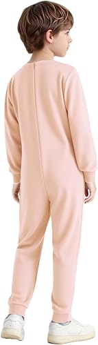 TiaoBug Kids Boys Girls Special Needs Adaptive Clothing Long Sleeve Long Leg Zip Back Jumpsuit Anti-Strip Romper Orange Pink 10 Years