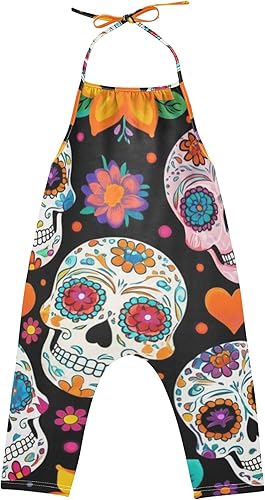 Abstract Colorful Human Skulls Baby Jumpsuit for Girls Toddler Rompers Halter Onesie Unisex Summer Clothes Baby