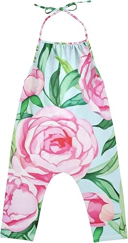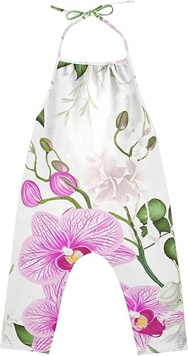 Rompers Toddlers Baby Jumpsuits Girls Lightweight Halter Neck Onesie Pink Orchids White Flowers Summer Clothing 1t