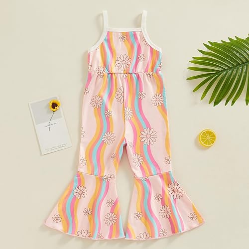 Dcohmch Toddler Girl Bell Bottom Jumpsuit Sleeveless Romper Pants Flower Halter Overalls Summer Clothes 1-5T (Colorful, 6-12 Months)