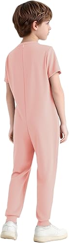 Linjinx Adaptive Clothing for Special Needs Kids Short Sleeve Anti-Strip Jumpsuit Autism Sensory Long Leg Romper Pink 8 Years