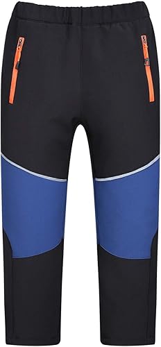 YRAETENM Kids Fleece Lined Hiking Snow Ski Pants Boys Girls Outdoor Softshell Trousers Waterproof Winter Ski Insulated Pants