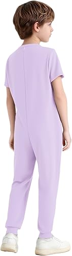 easyforever Kids Boys Girls Short Sleeve Anti-Strip Jumpsuit Romper Adaptive Clothing with Back Zipper for Special Needs Lavender 10 Years