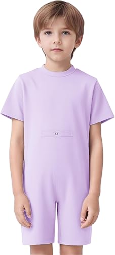 Adaptive Clothing for Children Autism Sensory Jumpsuit Special Needs Short Leg Romper with Tube Access Lavender 14 Years