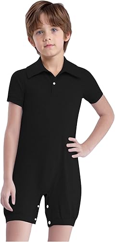 Special Needs Adaptive Clothing for Kids Girls Boys Jumpsuit Short Sleeve Button Closure Body Shirts Black 6 Years