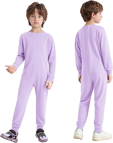 TiaoBug Kids Boys Girls Special Needs Adaptive Clothing Long Sleeve Long Leg Zip Back Jumpsuit Anti-Strip Romper Grey 6 Years
