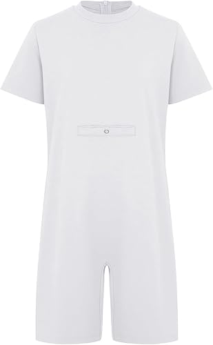 renvena Special Needs Adaptive Clothing for Kids Girls Boys Anti-Strip Jumpsuit with Tube Access Short Sleeve Romper White 6 Years