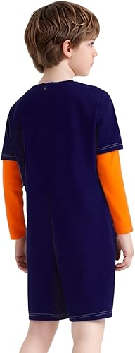Hansber Special Needs Adaptive Clothing for Children Long Sleeve Short Leg Zip Back Jumpsuit Autism Sensory Romper Navy Blue Orange 12 Years