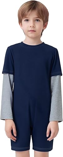 TiaoBug Special Needs Adaptive Clothing for Kids Easy Dressing Anti-Strip Romper Girls Boys Long Sleeve Jumpsuit Navy Blue Gray 6 Years
