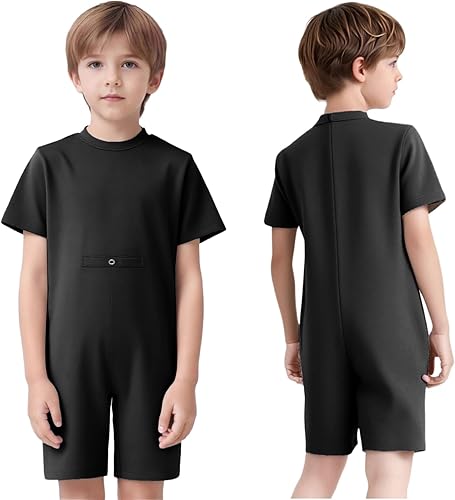 JEYPINMI Kids Girls Boys One Piece Rompers Casual Shorts Outfits Solid Color Jumpsuit Special Needs Adaptive Clothing Black 6 Years