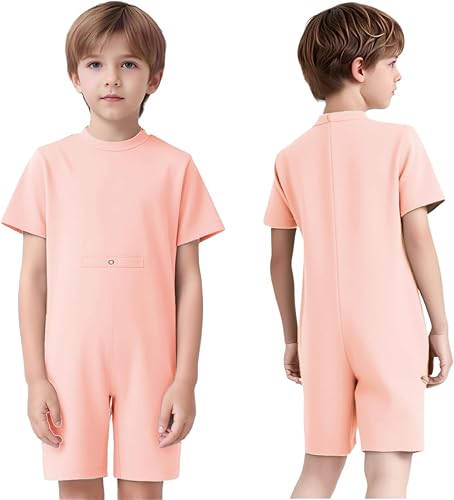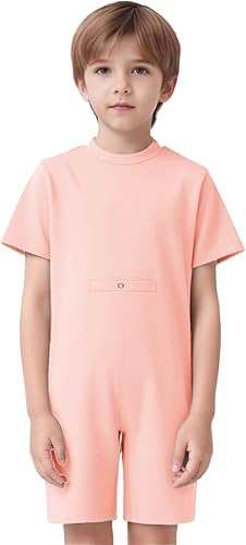 Special Needs Adaptive Clothing for Kids Anti-Strip Jumpsuit Girls Boys Short Sleeve Romper with Tube Access Pink 10 Years