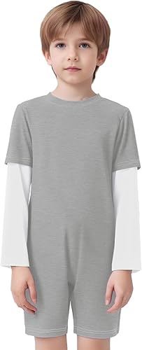 Adaptive Clothing for Kids Special Needs Autism Sensory Jumpsuit Long Sleeve Anti-Strip Romper Sizes 6-16 Years Gray White 8 Years