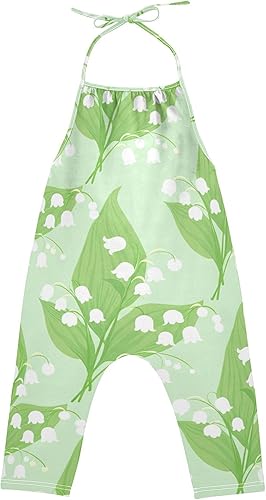 Baby Jumpsuits Girls Toddler Rompers Print Halter Onesie Cotton Sunsuit Lily of Valley Green Infant