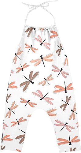 Girls' Casual Sleeveless Jumpsuits Dragonfly Insect Brown Kids Loose Romper Long Pants for 1-6 Years