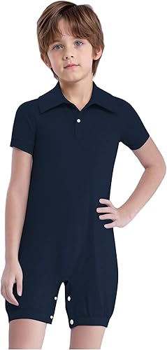 Special Needs Adaptive Clothing for Kids Girls Boys Jumpsuit Short Sleeve Button Closure Body Shirts Navy Blue 10 Years