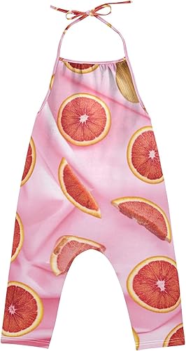 Spring Baby Jumpsuits Girls Toddlers Rompers Halter Neck Onesie Cotton Outfits Blood Orange Slices Pink 12m