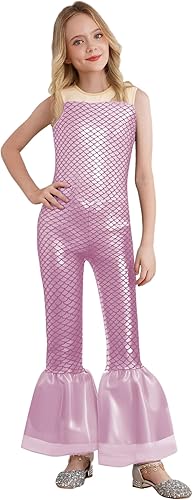Moily Kids Girls Mermaid Princess Overalls Sleeveless Fishscales Bell Bottom Long Jumpsuits for Party