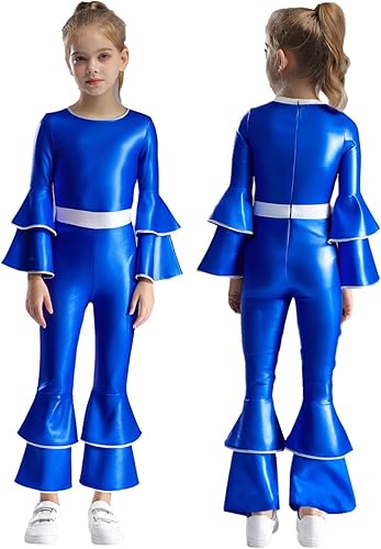 Loyan Kids Girl's Metallic Jumpsuit Sparkly Overalls Playsuit Flare Bell Bottom Pageant Party Romper Evening Gowns Royal Blue 12 Years