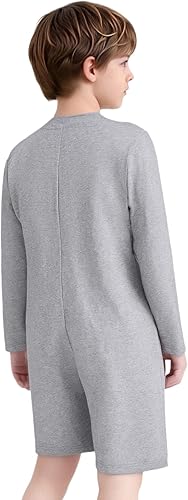 TiaoBug Kids Boys Girls Special Needs Adaptive Clothing Long Sleeve Long Leg Zip Back Jumpsuit Anti-Strip Romper Grey 10 Years
