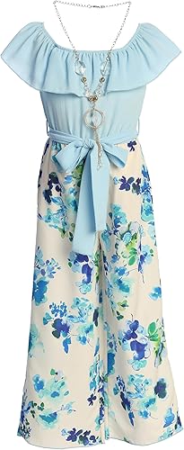 iGirlDress Girls Wide Leg Off Shoulder Elegant High Waist Rompers Palazzo Pants Trousers Jumpsuits USA 4-14