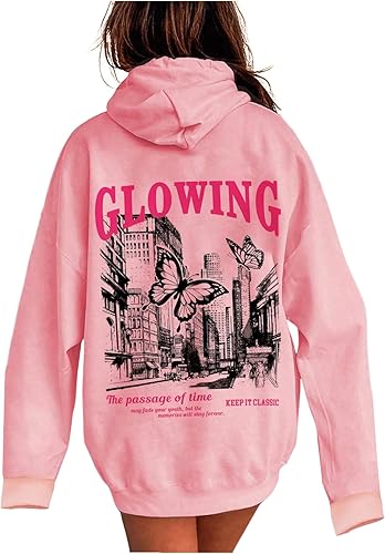 Cute Preppy Letter Graphic Sweatshirts for Teen Girls Oversized Aesthetic Hoodies Crewneck Long Sleeve Pullover Tops