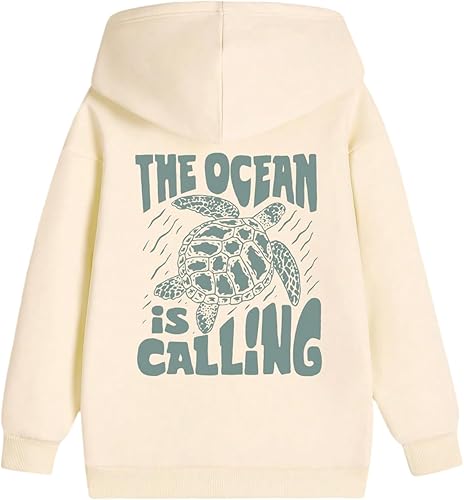SHENHE Girl's Cute Turtle Hoodie Ocean Animal Graphic Print Long Sleeve Kid Preppy Hooded Sweatshirt