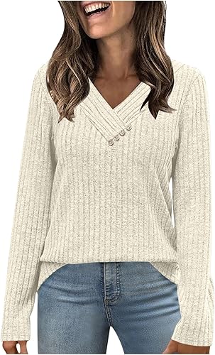 Womens 3/4 Sleeve Tops 2025 V-Neck Fall Outfits Casual Shirts Blouses Beach Vacation Fall Fashion Clothes