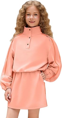 Mirawise Girls Sweatsuit 2 Piece Long Sleeve Sweatshirt and Skorts Tracksuit Pocketed Activewear Skort Sets for 4-13Y
